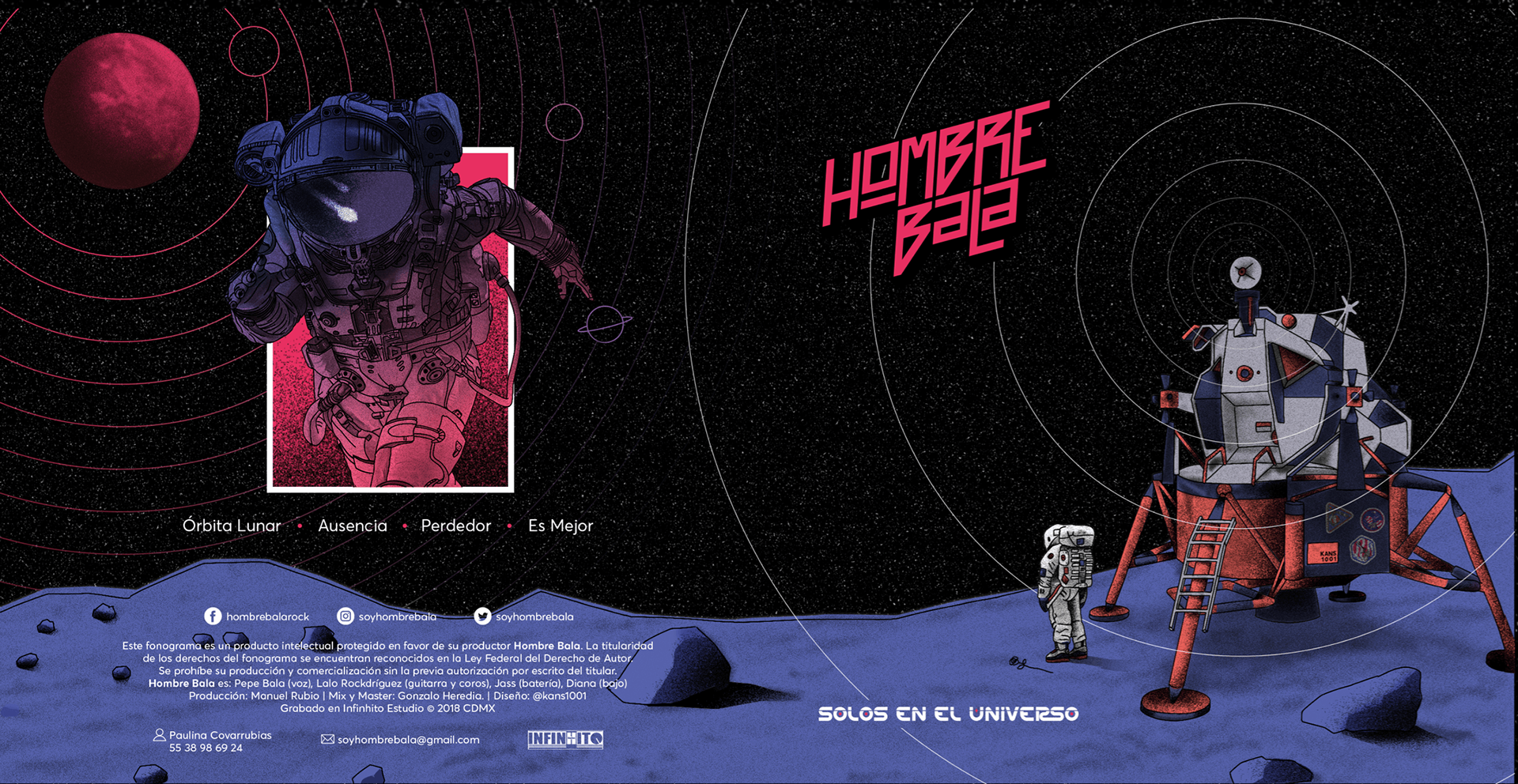 We collaborated with the rock band Hombre Bala in the making of the graphic image for their EP cover. We also worked on the logo and the design of their merchandise. ð
